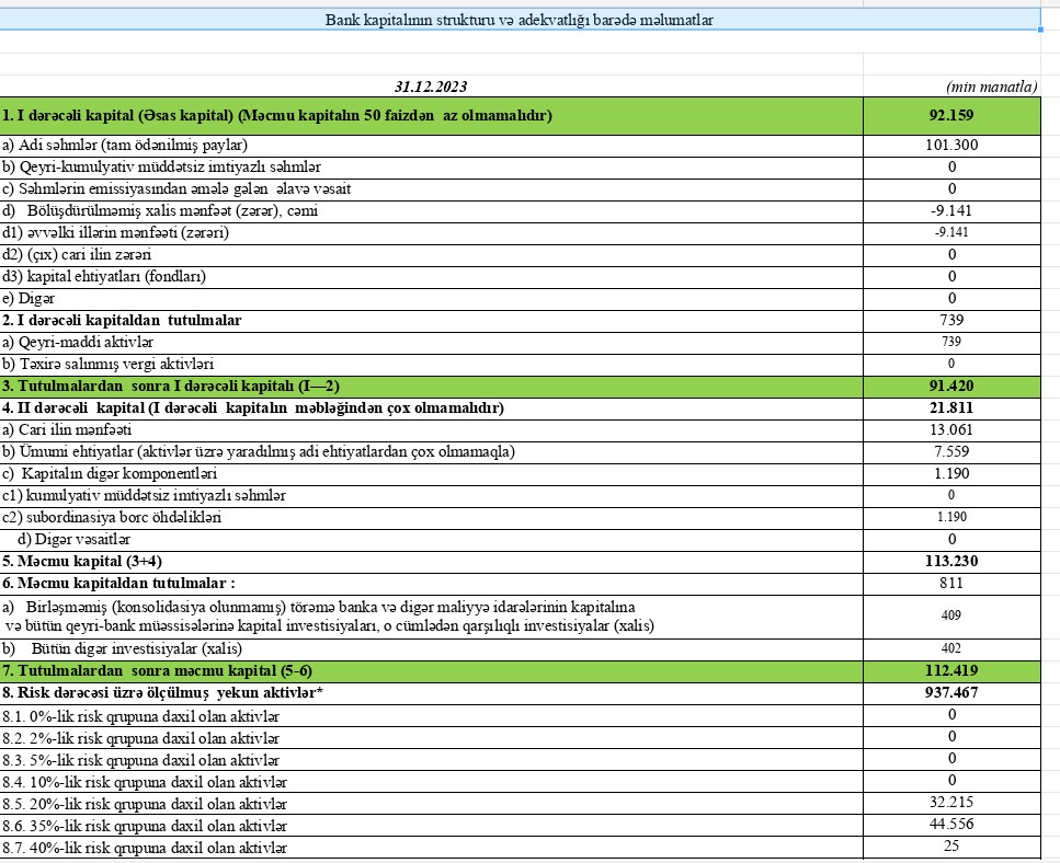 31 dekabr 2023-cü il tarixində "Rabitəbank" ASC 112 milyon 419 min manat məcmu kapitala malik olub.