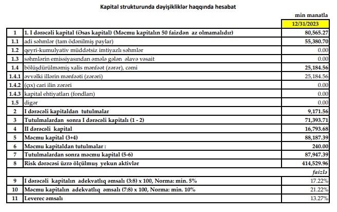 Əsas səhmdarı Türkiyənin "Yapı Kredi A.Ş." bankı olan “Yapı Kredi Bank Azərbaycan” QSC 2023-cü il üzrə maliyyə göstəricilərini açıqlayıb.