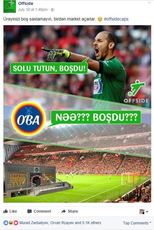 Rəsul Zahidov, Fərrux Qocamanlı, Kamran Musazadə, Rəşad Hüseynov və Offside səhifəsi paylaşdıqları statuslara görə dəyərli hədiyyələrlə mükafatlandırılmışdır. Qaliblər ilk dəfə fəaliyyətə başlayan OBA market filialına dəvət olunmuş, onlara marketin fəaliyyəti, konsepsiyası, satılan məhsulların istehsal prosesi, qiymət ucuzluğunun səbəbi və s. haqqında ətraflı məlumat verilmişdir.