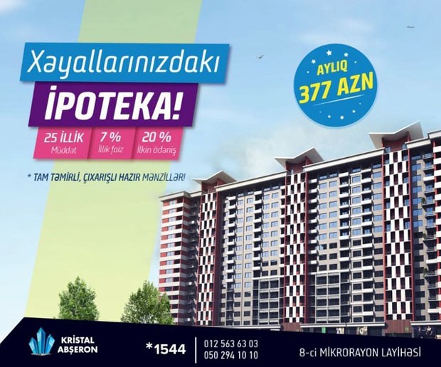 Çoxları əlavə kirayə haqqı ödəməsin deyə, tikintisinə yeni başlanmış binadan mənzil almaq istəmir. “Kristal Abşeron”un 8-ci makrorayon layihəsi 2017-ci ilin sonuna təhvil veriləcək.