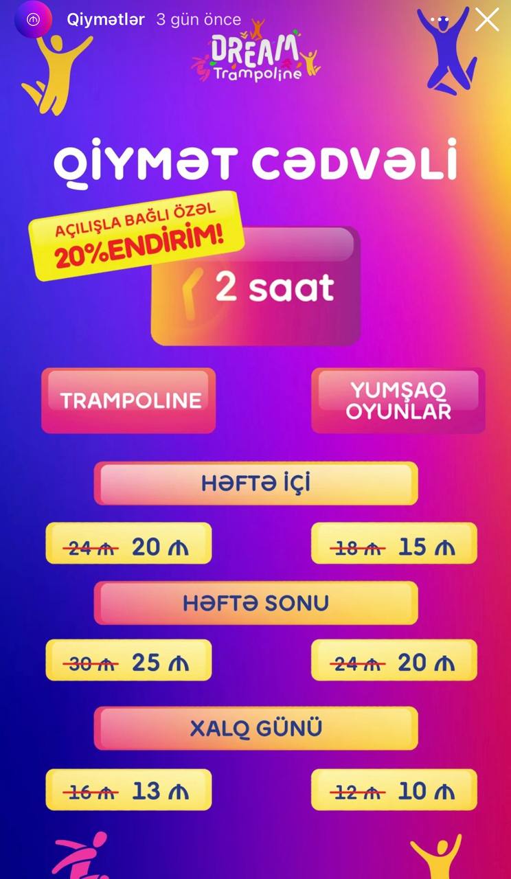 “Dream Trampoline” əyləncə mərkəzinin açılışa özəl qiymətləri: