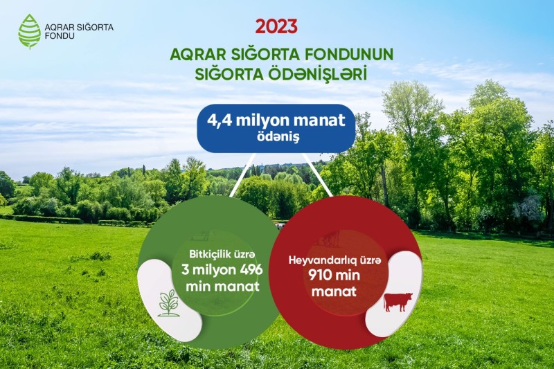 2023-cü ildə heyvandarlıq sığortası üzrə baş vermiş hadisələrə görə Aqrar Sığorta Fondu tərəfindən sığortalı fermer və təsərrüfatlara 910 066 manat sığorta ödənişi edilib. 2022-ci illə müqayisədə sığorta ödənişlərinin məbləği 200 min manat və ya 28% artıb.