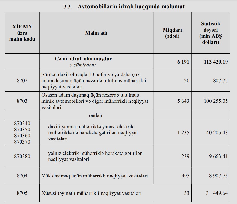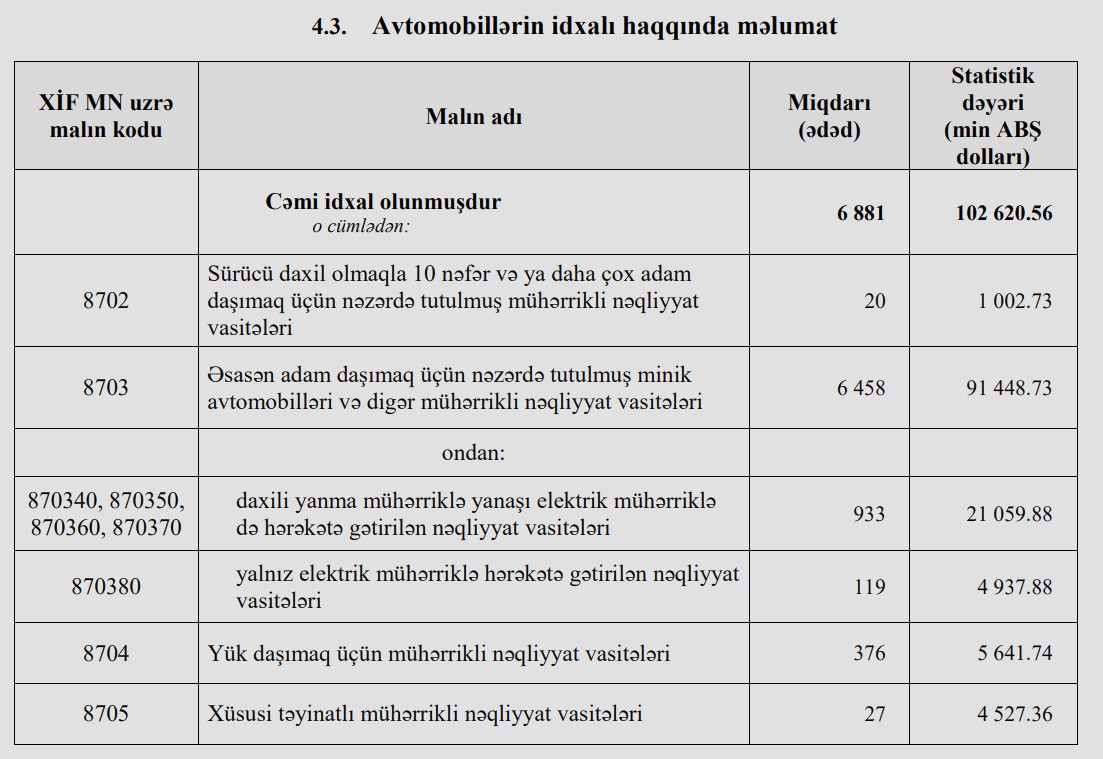 Yanvarda elektromobillərin idxalında isə artım müşahidə olunub.