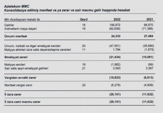 Qeyd edilib ki, ümumi gəlirlərdə müşahidə edilən artıma baxmayaraq Cəmiyyət 2022-ci ili 26 milyon 101 min manat zərərlə başa vurub.