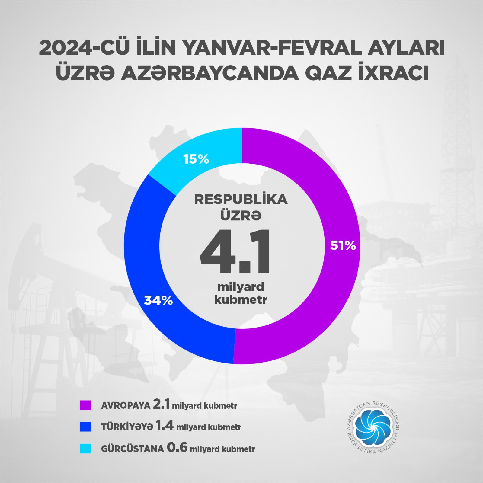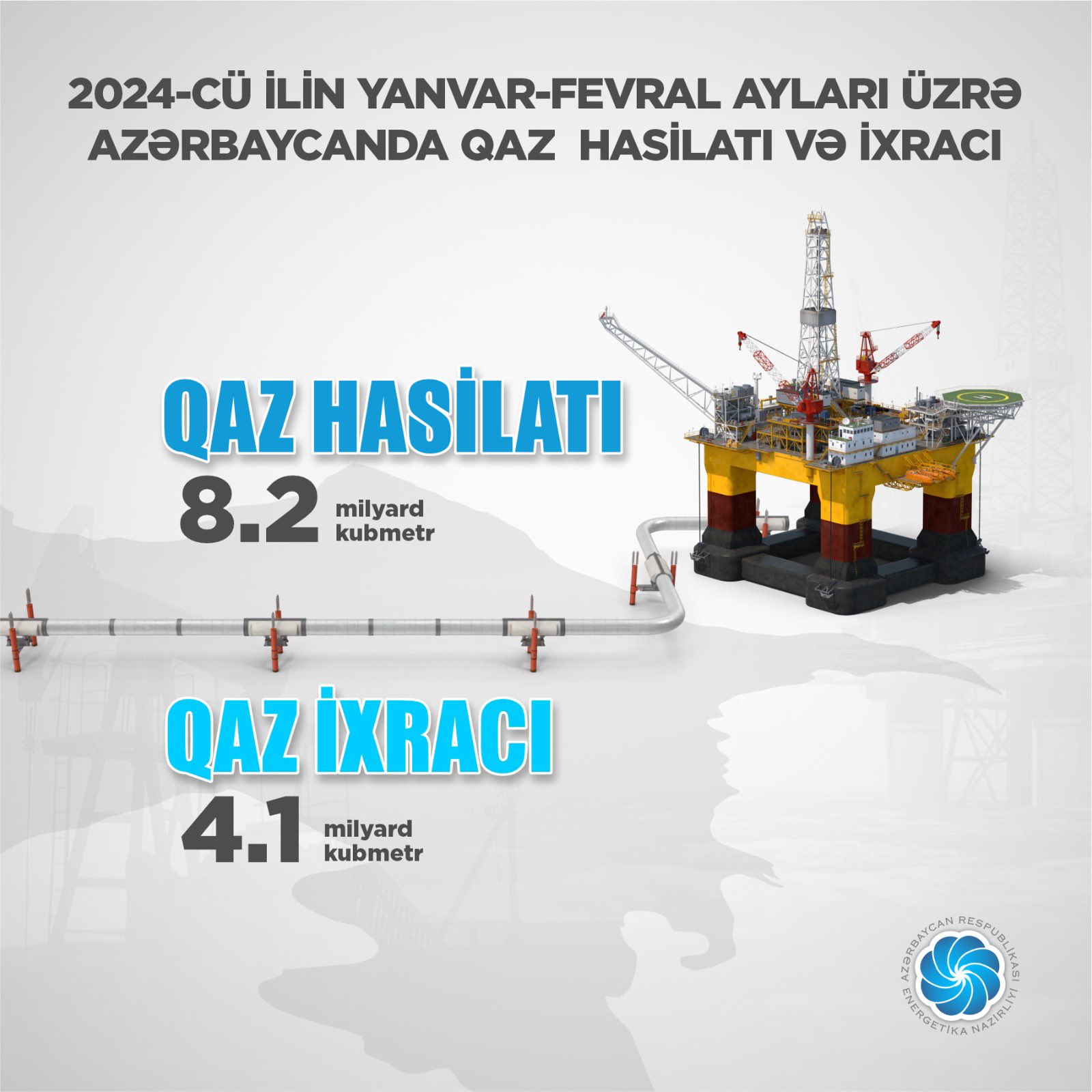 Energetika naziri Pərviz Şahbazovun "X" sosial şəbəkəsində paylaşdığı məlumatlara görə, bu dövrdə 240 mln.m3 artımla hasil edilmiş 8,2 mlrd.m3 qazın 4,1 mlrd.m3-i ixrac olunub.