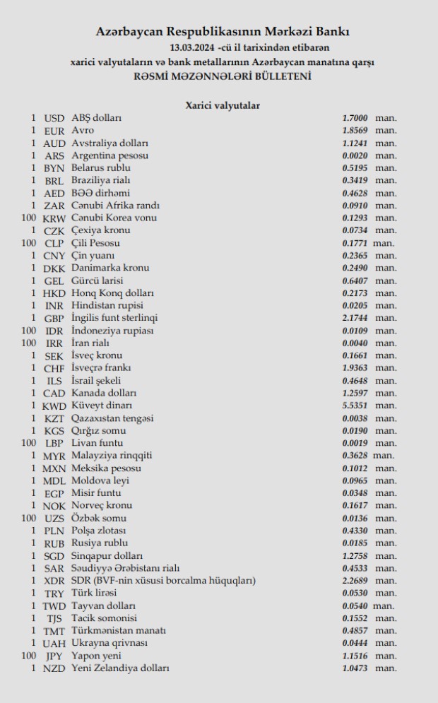 Mərkəzi Bankdan 2026-cı ildə Dollar/Manat məzənnəsi barədə açıqlama