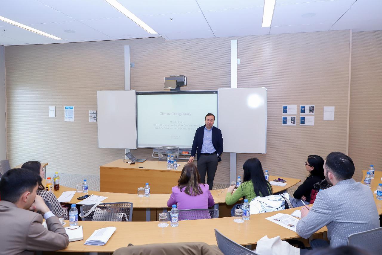 İngilis dilində keçirilən təlimdə bərpa olunan enerji, iqlim dəyişikliyi məsələləri və dayanıqlılıq üzrə ixtisaslaşmış kommunikasiya mütəxəssisi Nik Mediç “İqlim dəyişikliyinin elmi əsasları”, “Bərpa olunan enerji: texnologiya və inkişaf” adlı sessiyalarda çıxış etmişdir.
