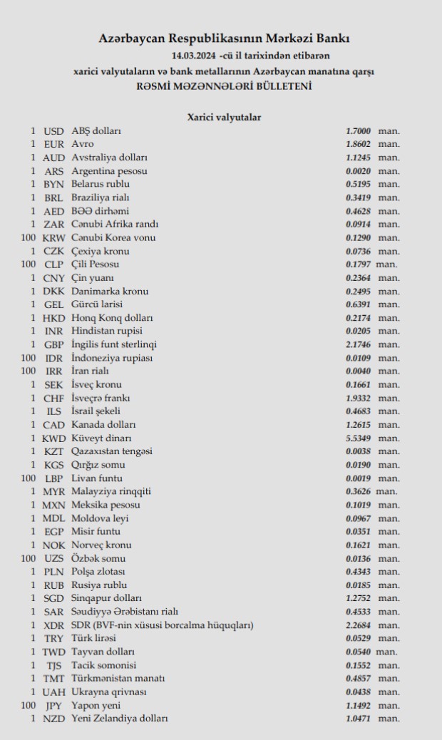 Mərkəzi Bankdan 2026-cı ildə Dollar/Manat məzənnəsi barədə açıqlama