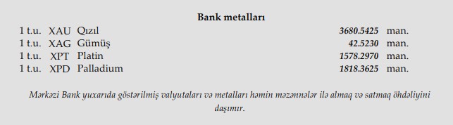 Rəsmi məzənnələr açıqlandı