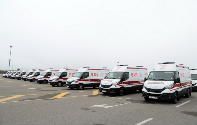 Prezident yeni alınmış təcili tibbi yardım avtomobilləri ilə tanış olub