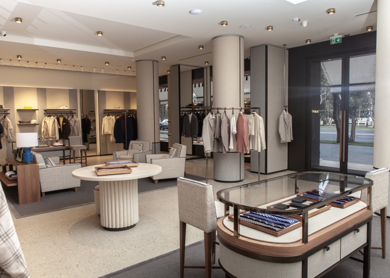 Lüks hissləri oyatmaq üçün nəzərdə tutulmuş butikin interyerində müasir estetika klassik italyan zərifliyi ilə mükəmməl vəhdət təşkil edir. Eleqant gündəlik geyimlərdən qüsursuz tikişə malik kostyumlara və gecə paltarlarına qədər butikin nəfis kişi və qadın kolleksiyaları incəlik və misilsiz keyfiyyətin qəsidəsidir.