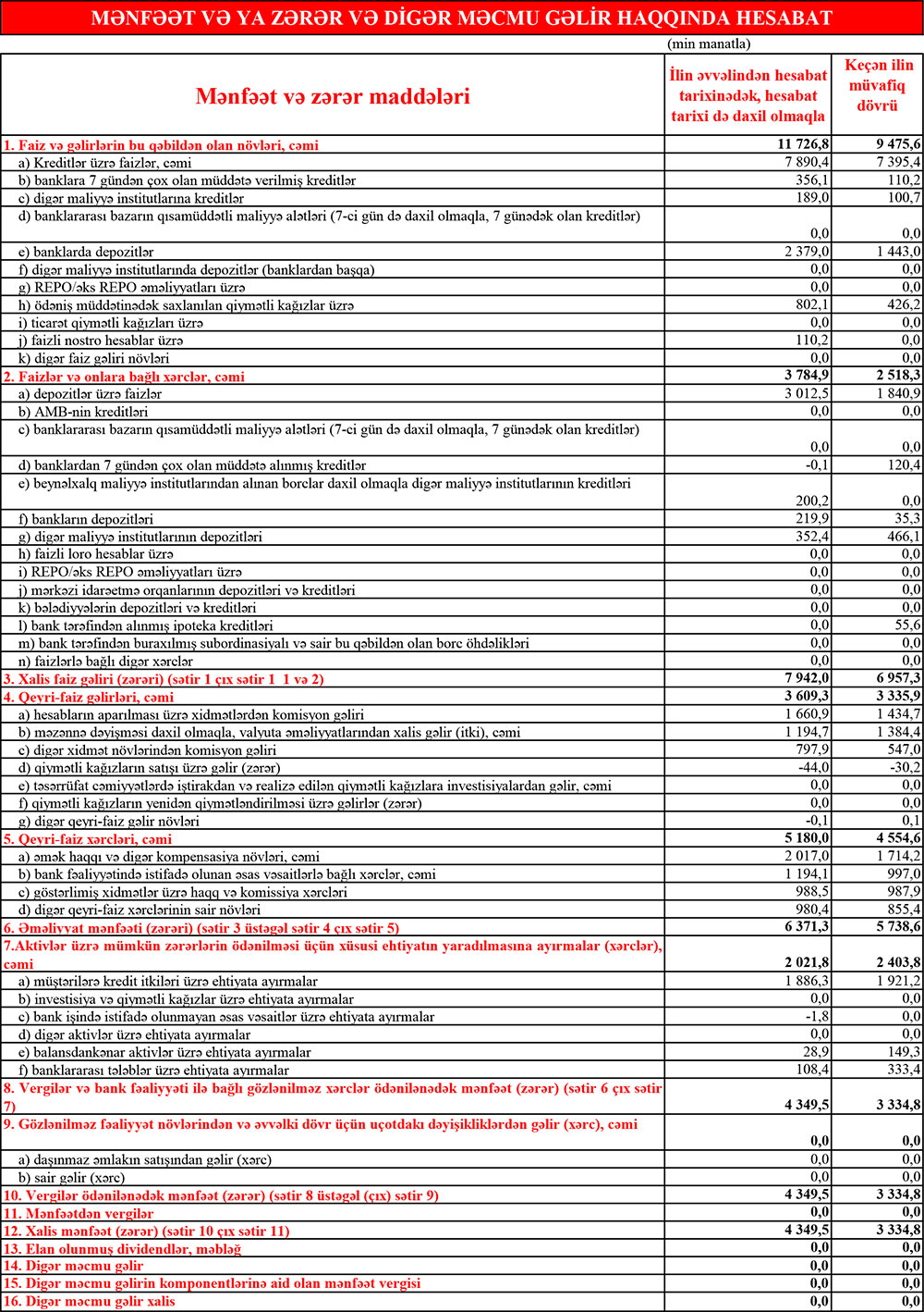 Bu barədə Marja.az Bankın maliyyə göstəricilərinə istinadən xəbər verir.