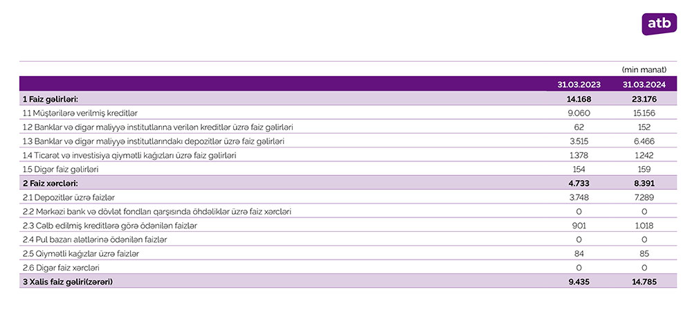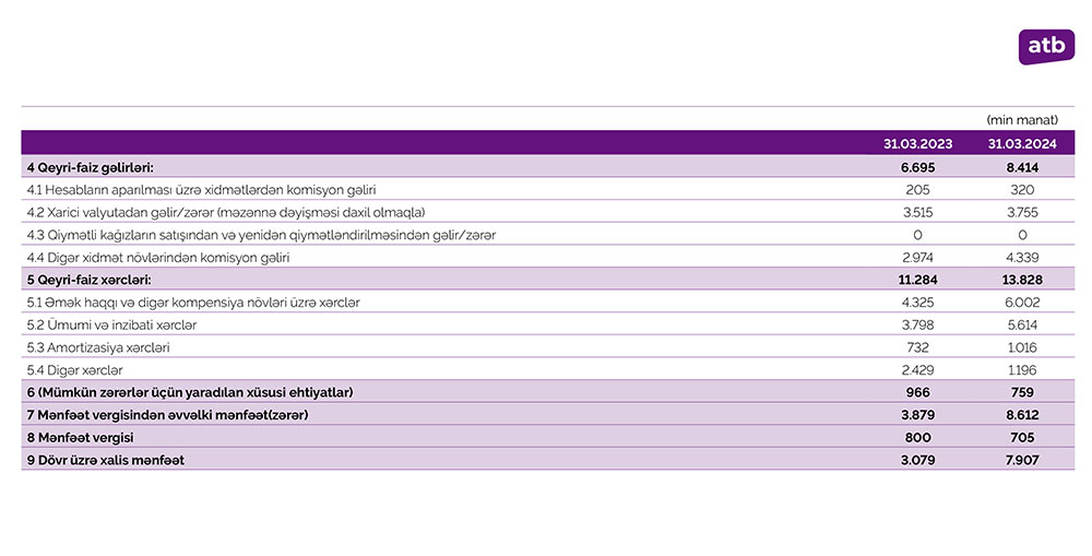 2024-cü ilin ilk üç ayında Azər Türk Bank 7,9 milyon manatdan çox xalis mənfəət əldə etmişdir.