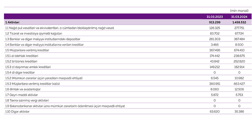 Dövlət bankı Azər Türk Bankın 01 aprel 2024-cü il tarixinə aktivləri ötən ilin müvafiq dövrü ilə müqayisədə 60%-dək artaraq, 1,5 milyard manat səviyyəsində olmuşdur.