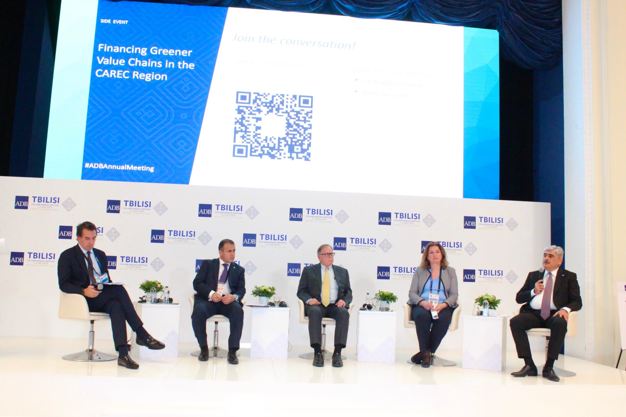 Toplantının ilk günündə “Orta Dəhliz: Avropa və Asiya arasında əlaqələrin yenidən qurulması” və AİB-nin Mərkəzi Asiya Regional iqtisadi Əməkdaşlıq (CAREC) Proqramının təşkil etdiyi “Regionda Yaşıl Dəyər Zəncirlərinin Maliyyələşdirilməsi” mövzularında seminar və panel müzakirələr keçirilib.