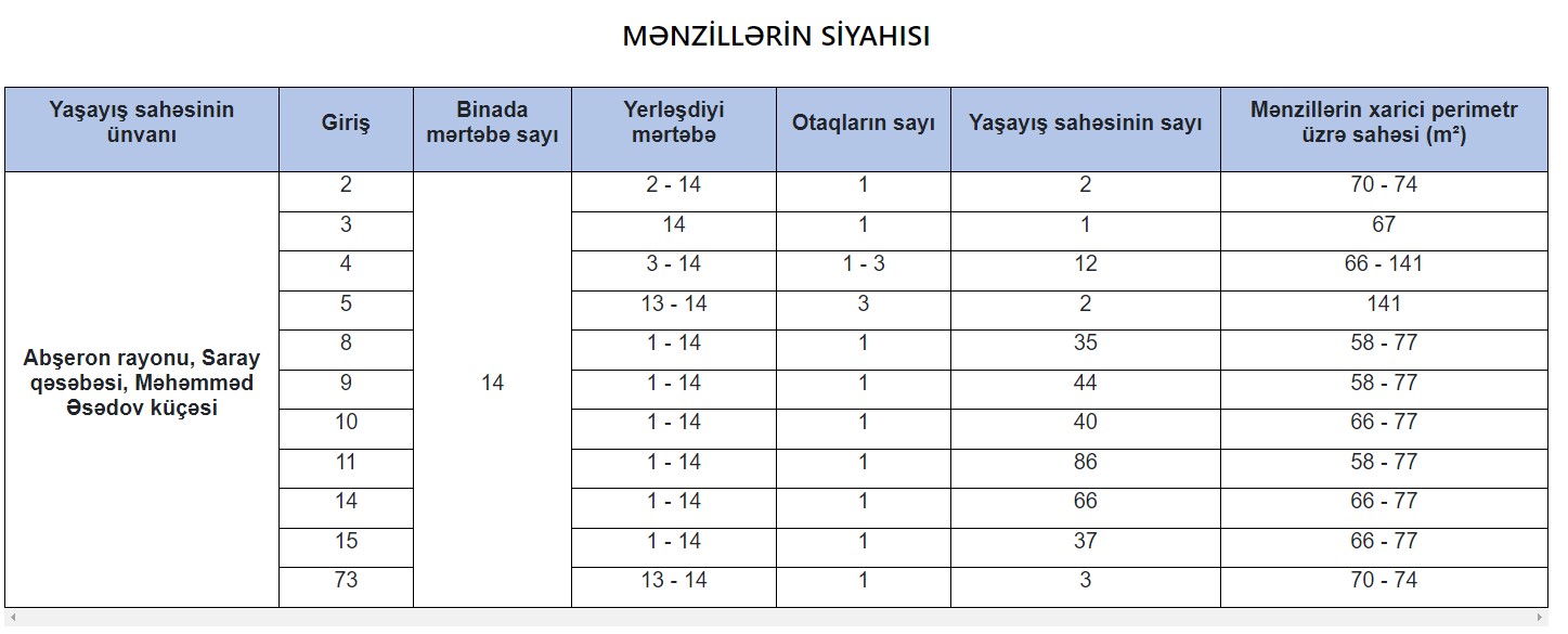Mənzillər Elektron ipoteka və kredit zəmanət sistemi (EİKZS) üzərindən seçim üçün 23 may 2024-cü ildən etibarən açıq olacaq. Vətəndaşlar yaşayış kompleksləri üzrə təklif olunan mənzillərin siyahısı ilə bu keçid vasitəsilə tanış ola bilərlər.