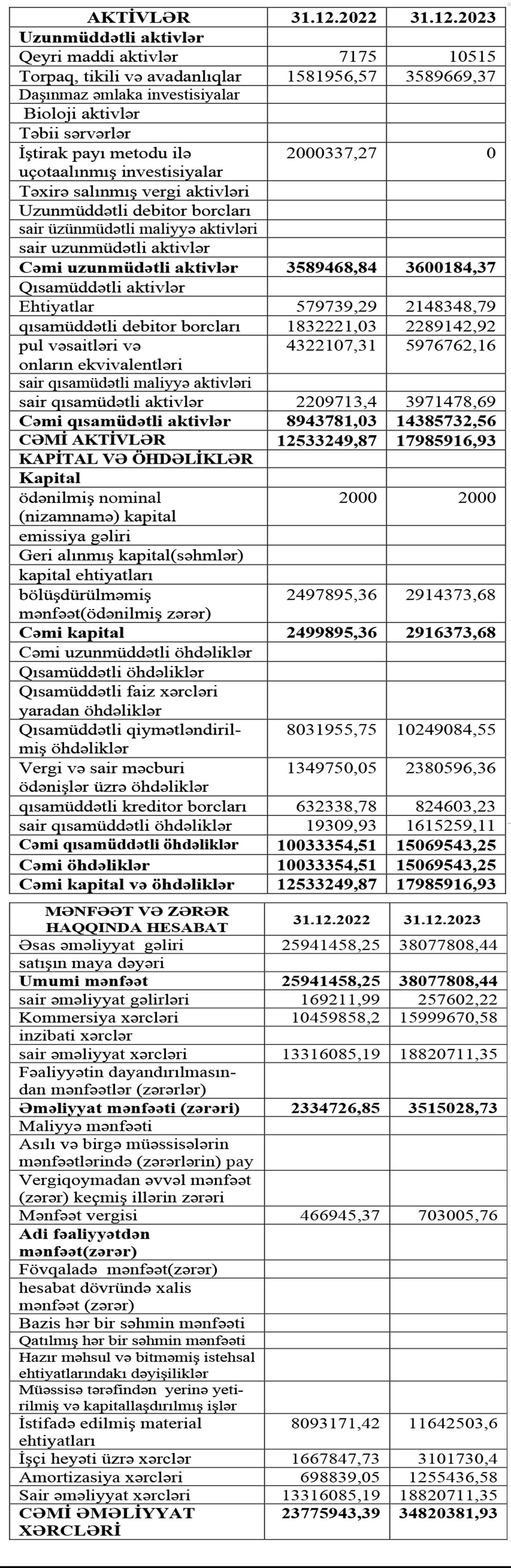 "Azİnvest İnşaat" şirkətinin gəliri və xalis mənfəəti kəskin artıb