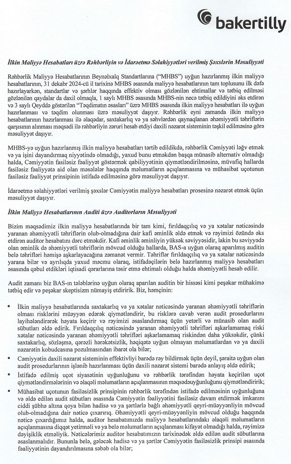 “CASPIAN FINANCE BANK OLMAYAN KREDİT TƏŞKİLATI” MMC 2023-cü il üzrə maliyyə göstəricilərini açıqladı “CASPIAN FINANCE BANK OLMAYAN KREDİT TƏŞKİLATI” MMC-nin 31 dekabr 2023-cü il tarixində bitən il üzrə maliyyə hesabatları.