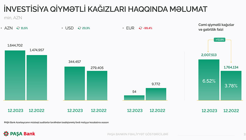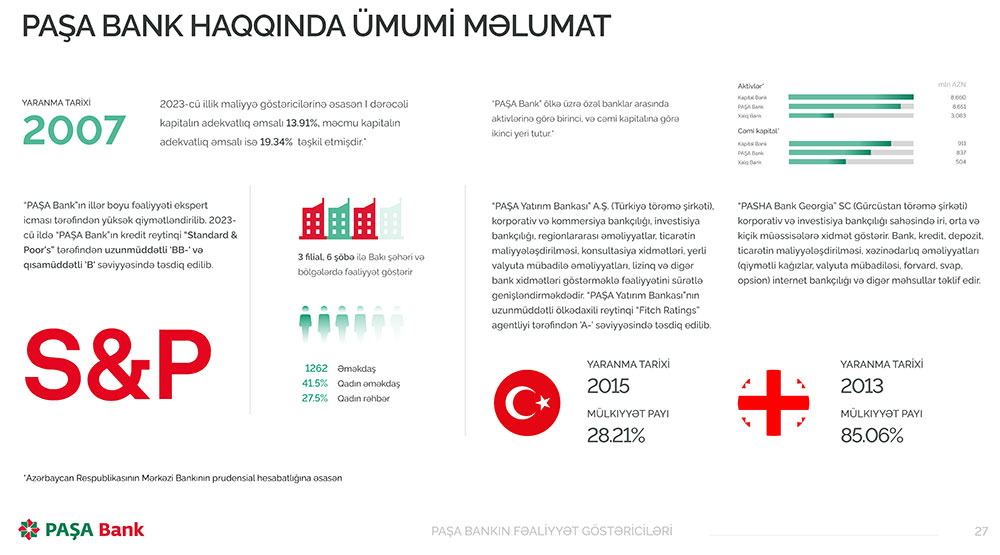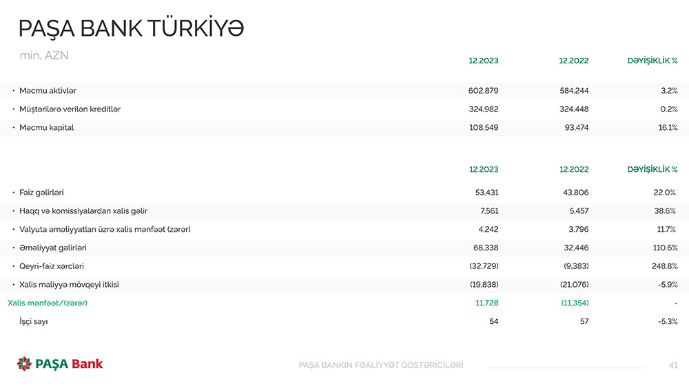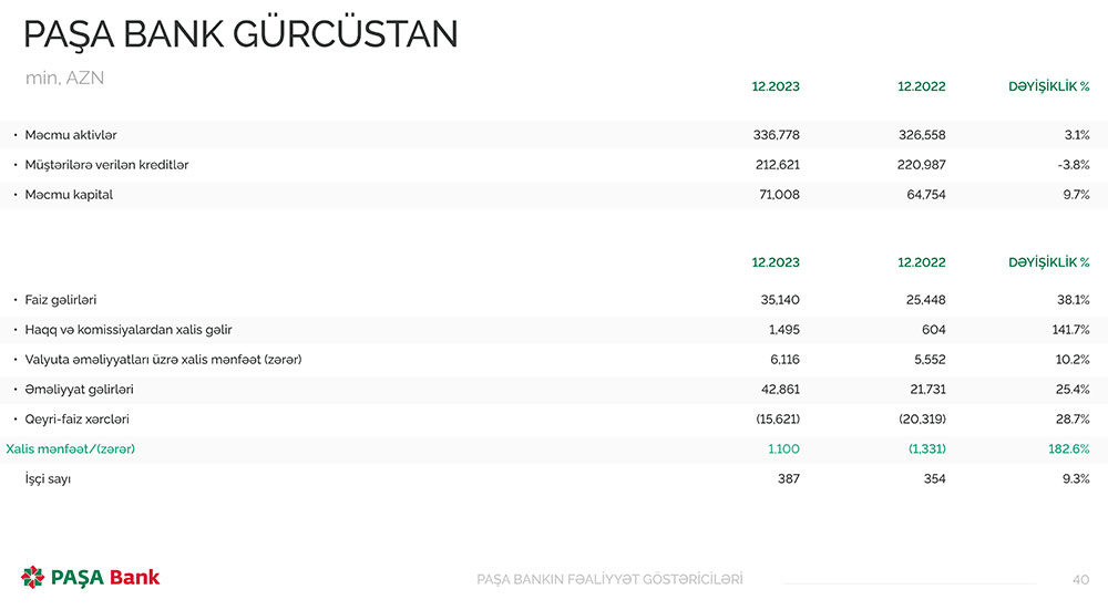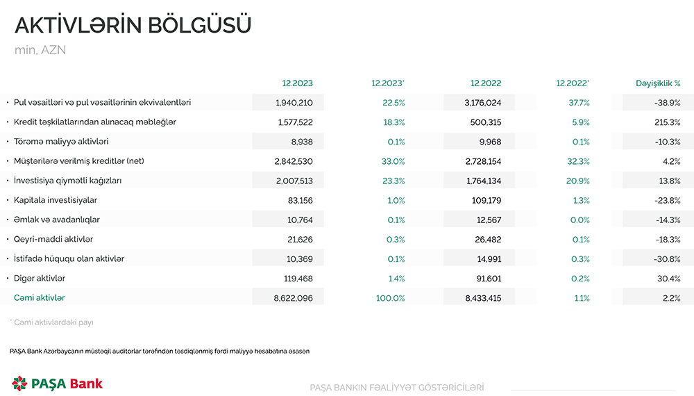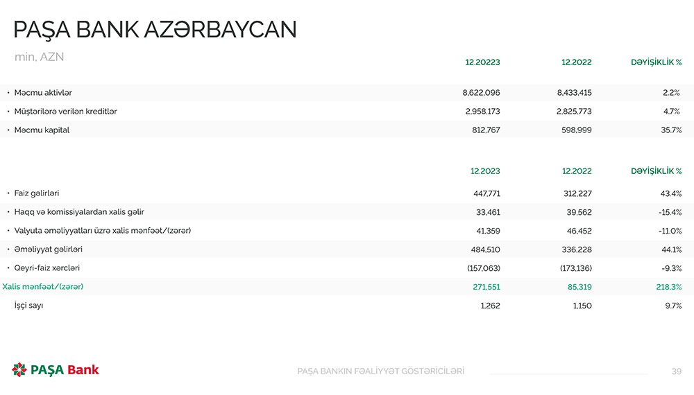 “PAŞA Bank” ASC-nin 2023-cü ilin nəticələri barədə daha ətraflı aşağıdakı göstəricilərdən tanış ola bilərsiniz.