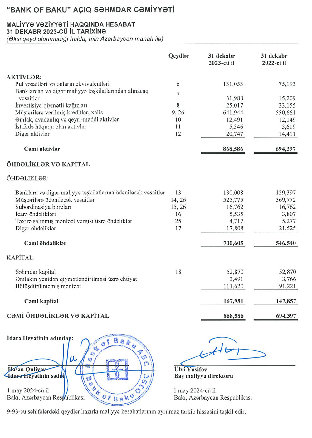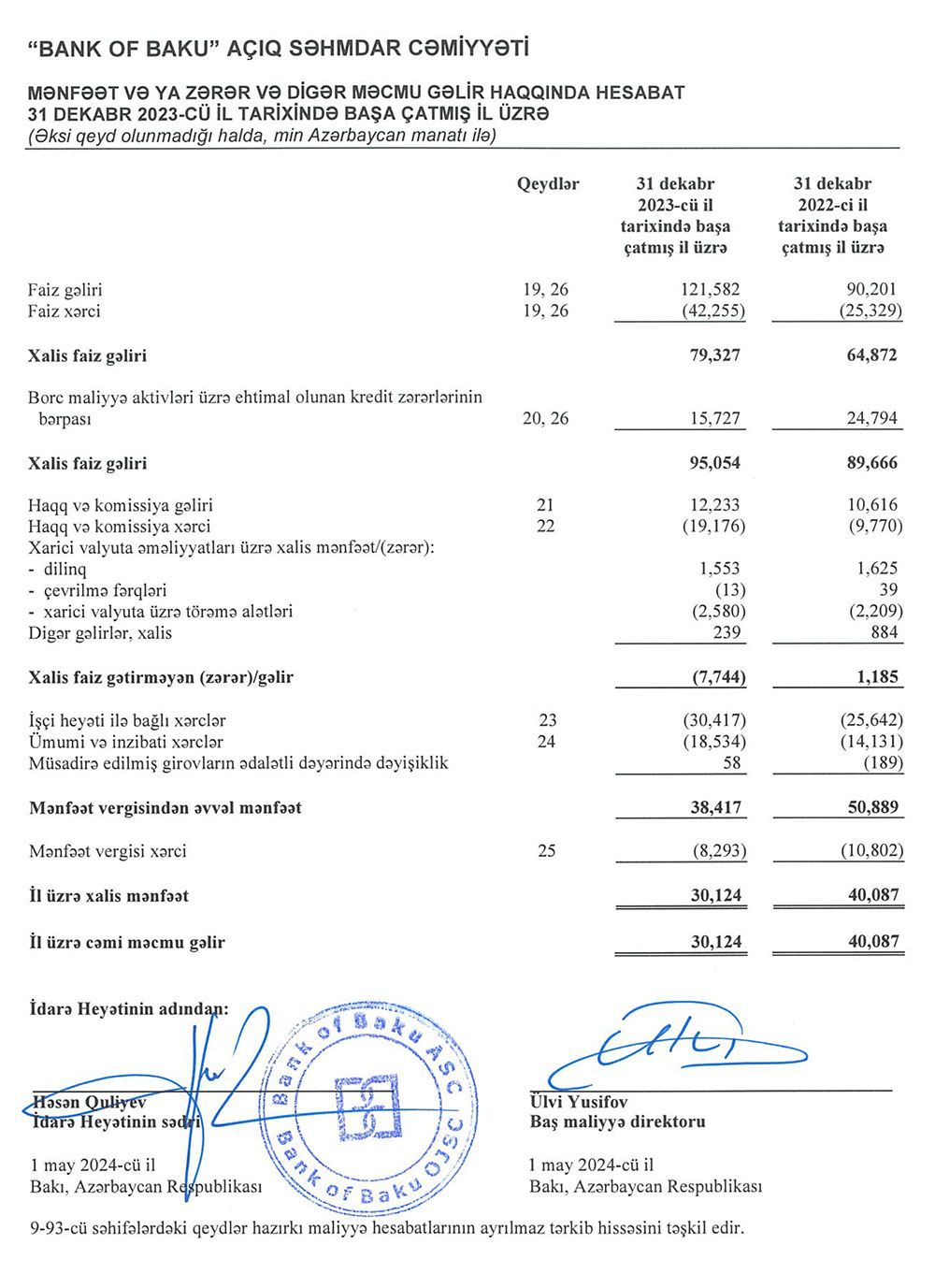 “Bank of Baku” ASC 2023-cü ili 30 milyon 124 min manat xalis mənfəət ilə başa vurub. Bank 2022-ci ili 40 milyon 87 min manat xalis mənfəət ilə bağlamışdı.