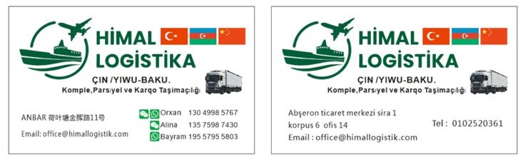“Himal Logistik” şirkəti Çin-Azərbaycan, Çin-Türkiyə, Çin-Rusiya arasında yüklərin daşınması və gömrük rəsmiləşdirilməsi sahəsində sahibkarlara xidmət göstərir.
