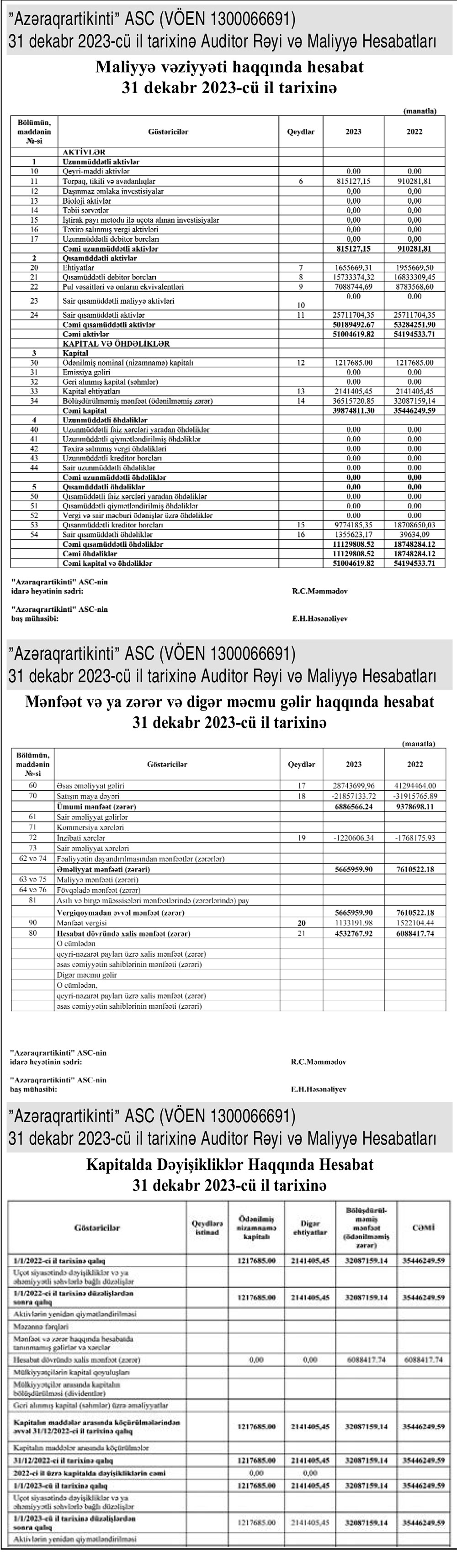 31 dekabr 2023-cü il tarixində "Azəraqrartikinti" ASC 51 milyon 4 min manat cəmi aktivlərə malik olub. Şirkət 2022-ci ilin sonunda 54 milyon 195 min manat cəmi aktivlərə malik idi. Beləliklə, ötən il "Azəraqrartikinti" ASC-nin cəmi aktivləri 3 milyon 190 min manat və ya 5,9% azalıb.