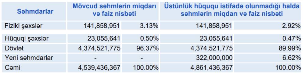 Qeyd olunan məhdudiyyətlər nəzərə alınmaqla bir investor tərəfindən bir neçə sifariş təqdim edilə bilər. Yeni səhm təklifi nəticəsində 322 000 000 ədəd səhmin tam yerləşdirilməsi baş tutduğu halda ehtimal olunan dəyişiklik aşağıdaki kimi olacaq: