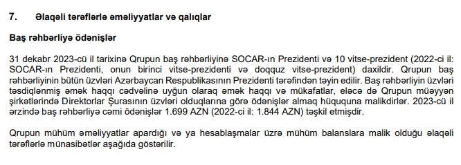 2023-cü ildə SOCAR-ın Baş rəhbərliyinə ödənişlər açıqlanıb.