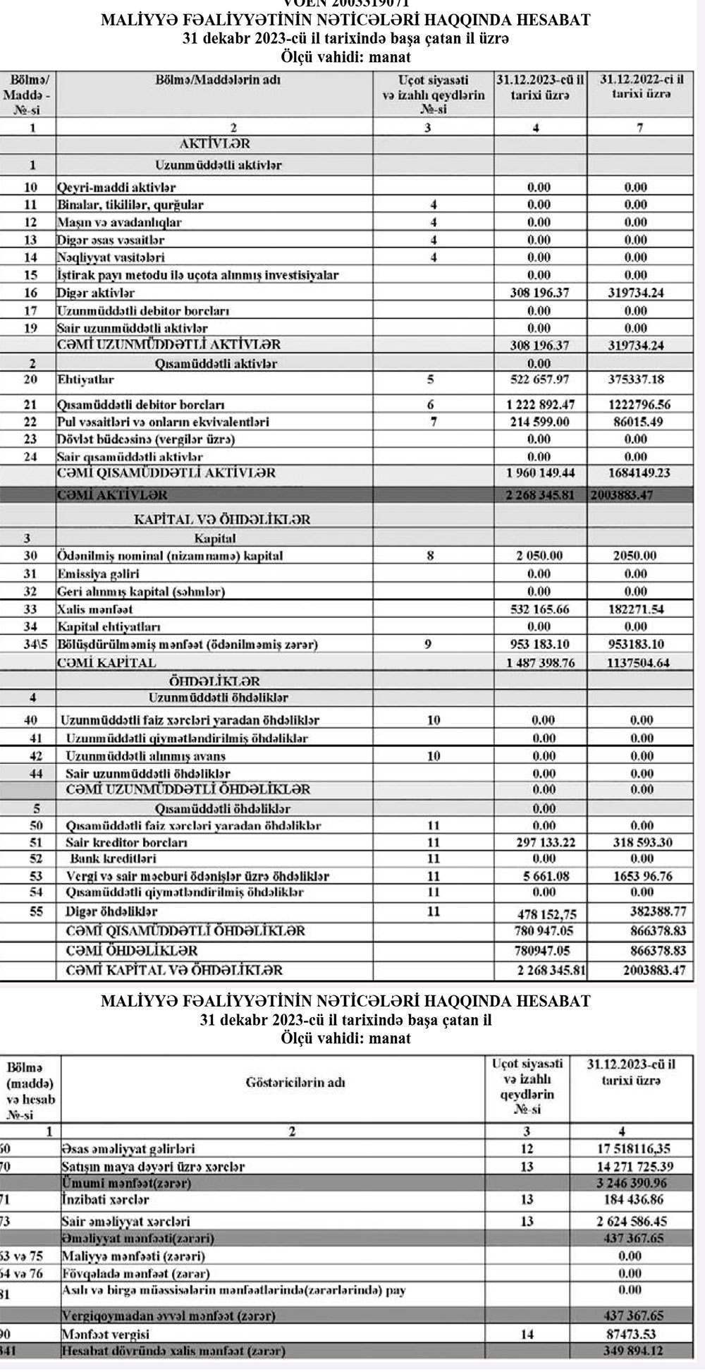 Tez-tez tenderlərdə qalib olan şirkət 17,5 milyon gəlirdən 350 min mənfəət açıqladı