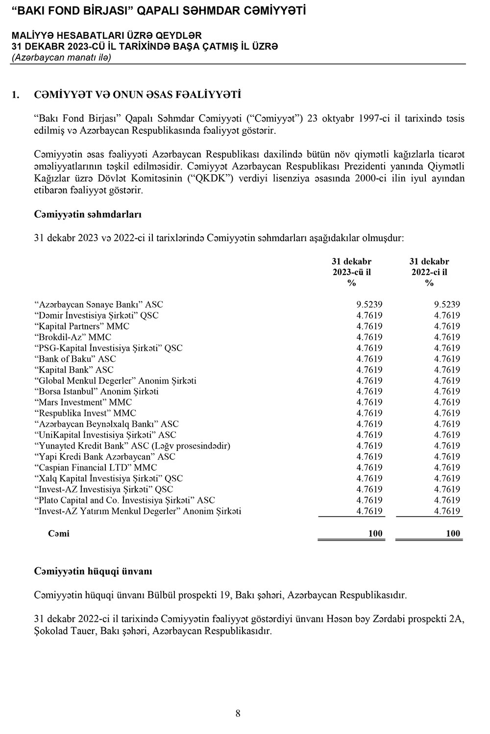 "Bakı Fond Birjası" QSC 2023-cü ili 368 min manat xalis zərər ilə başa vurub. Birja 2022-ci ili 256 min manat xalis zərər ilə bağlamışdı. Beləliklə, ötən il "Bakı Fond Birjası"nın xalis zərəri 112 min manat və ya 43,8% artıb.