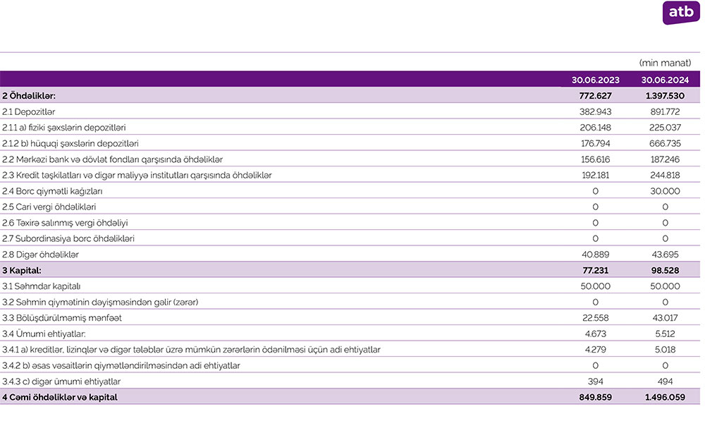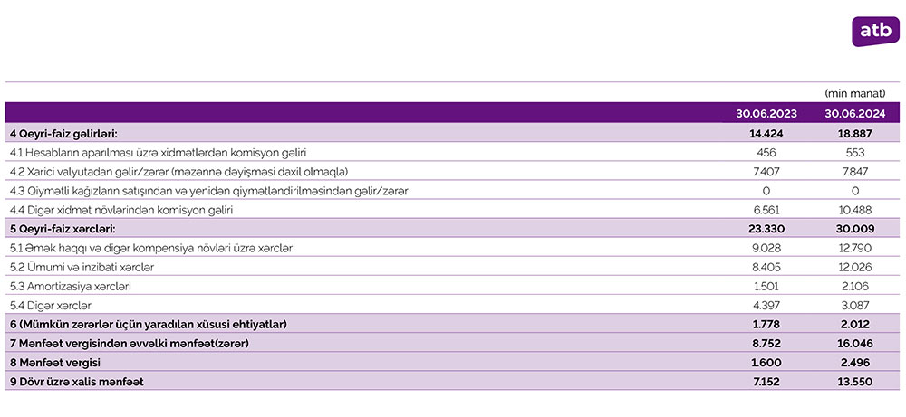 Həmçinin, ilk 6 ayda Bank əməliyyat mənfəətindən 2 milyon 12 min manat mümkün zərərlər üçün yaradılan xüsusi ehtiyata ayırıb. 2023-cü ilin eyni dövründə “Azər-Türk Bank” əməliyyat mənfəətindən 1 milyon 778 min manat xüsusi ehtiyata ayırmışdı.