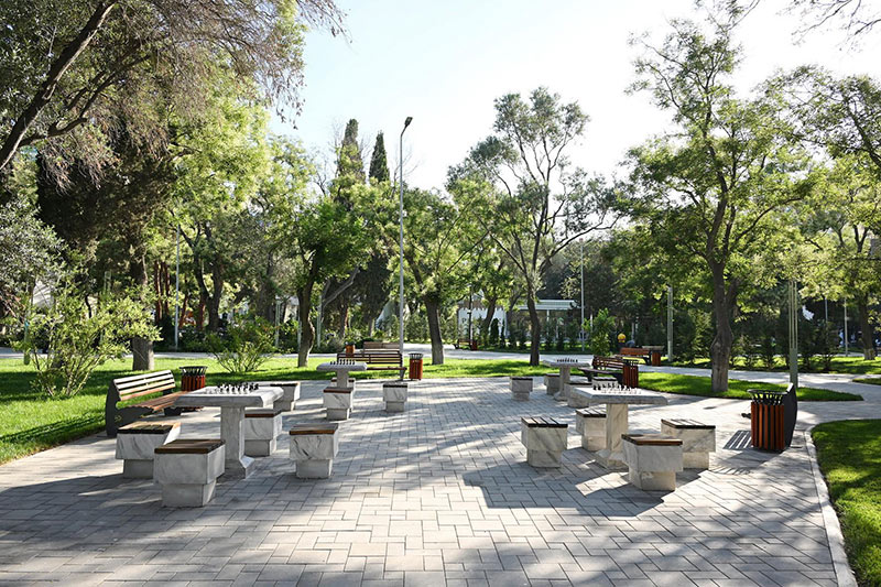 Məlumat verildi ki, şəhərimizin müasir inkişaf səviyyəsinə və memarlıq üslubuna uyğun olmayan park nadir dizaynda yenidən qurulub. Burada müxtəlif istirahət guşələri, əyləncə qurğuları yaradılıb, o cümlədən uzun müddət yararsız vəziyyətdə olan fəvvarə meydanının yenidən qurulması işləri həyata keçirilib.