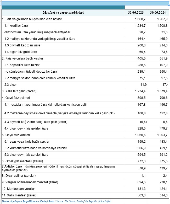 Bank sektorunun mənfəət və zərər haqqında hesabatı