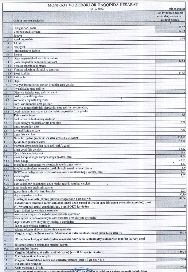 Marja.az xəbər verir ki, ilk 6 ayda kredit şirkətinin faiz gəlirləri 152 min 720 manat, qeyri-faiz gəlirləri 53 min 120 manat təşkil edib.