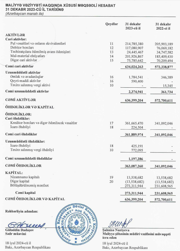 “Azərkontrakt” ASC 2023-cü ili 41 milyon 703 min manat xalis mənfəət ilə başa vurub. Şirkət 2022-ci ili 148 milyon 104 min manat xalis mənfəət ilə bağlamışdı. Beləliklə, “Azərkontrakt”ın xalis mənfəəti 2023-cü ildə 2022-ci illə müqayisədə 106 milyon 401 min manat və ya 71,2% azalıb.