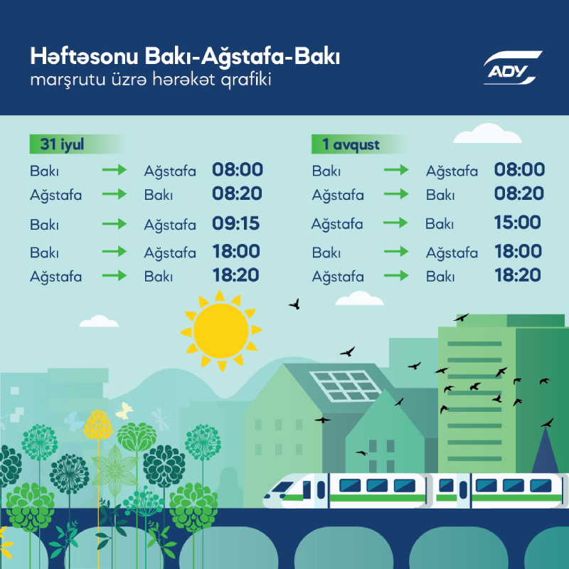 (®) ADY sərnişin tələbatını təmin etmək məqsədilə 31 iyul və 1 avqust tarixlərində Bakı-Ağstafa-Bakı marşrutu üzrə əlavə qatar reysləri təyin edir.