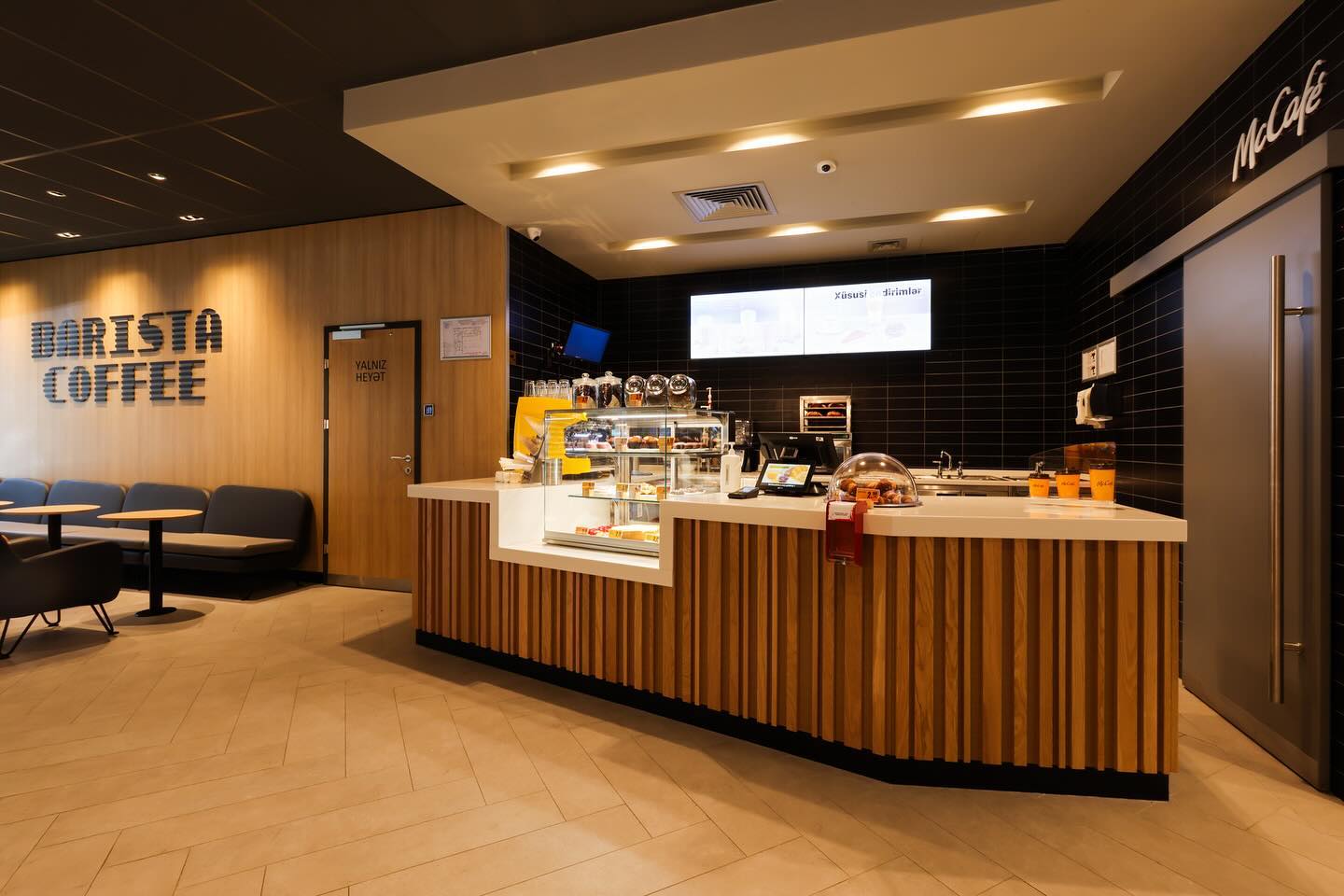 Olduqca geniş sahədə gözəl və komfortlu interyer, McCafe, masa arxası xidmət və Wolt vasitəsilə çatdırılma xidmətləri burada təqdim olunub.