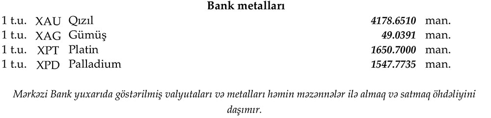 Rəsmi məzənnələr açıqlandı
