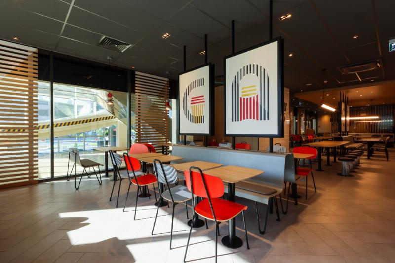 Yeni restoranın özəlliklərindən biri də rahat atmosfer yaradan “Geometry” dizaynıdır. Burada qonaqlara tez və rahat xidmət göstərmək üçün interaktiv özünəxidmət köşkləri vasitəsilə sifariş etməyə imkan verən EOTF (“Experience of the Future”) kimi innovativ texnologiyalar tətbiq olunur. Bütün digər restoranlarda olduğu kimi burada da masa arxasında sifarişinizi qəbul etməyə imkan verən “Table Service” xidməti təklif olunur ki, bu da qonaqlar üçün komfort səviyyəsini yüksəltmək məqsədi daşıyır.