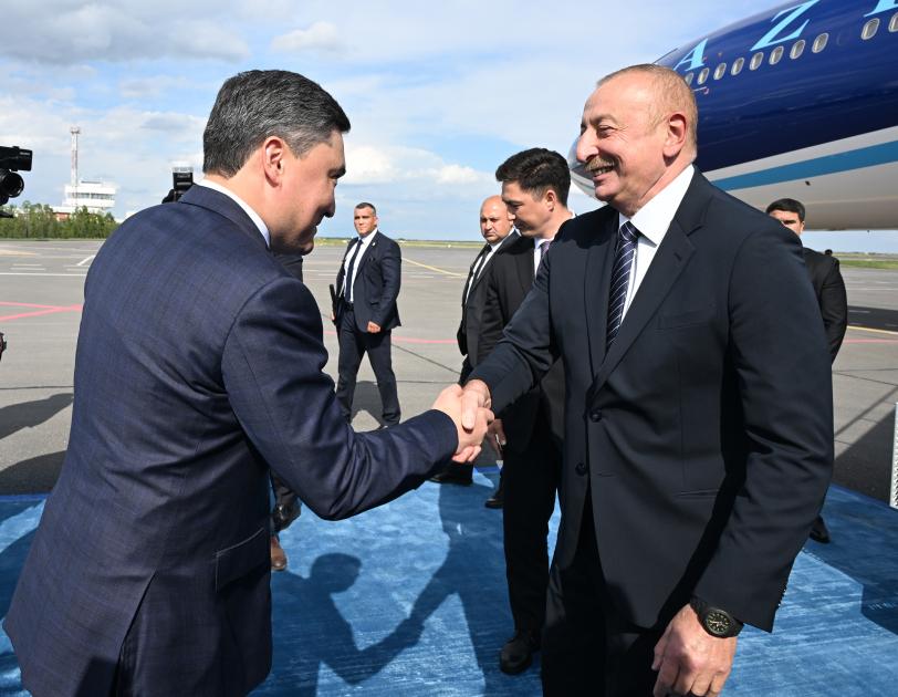 Azərbaycan Prezidentini Qazaxıstanın Baş naziri Oljas Bektenov və digər rəsmi şəxslər qarşıladılar.