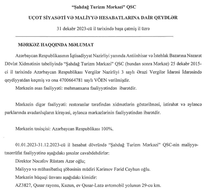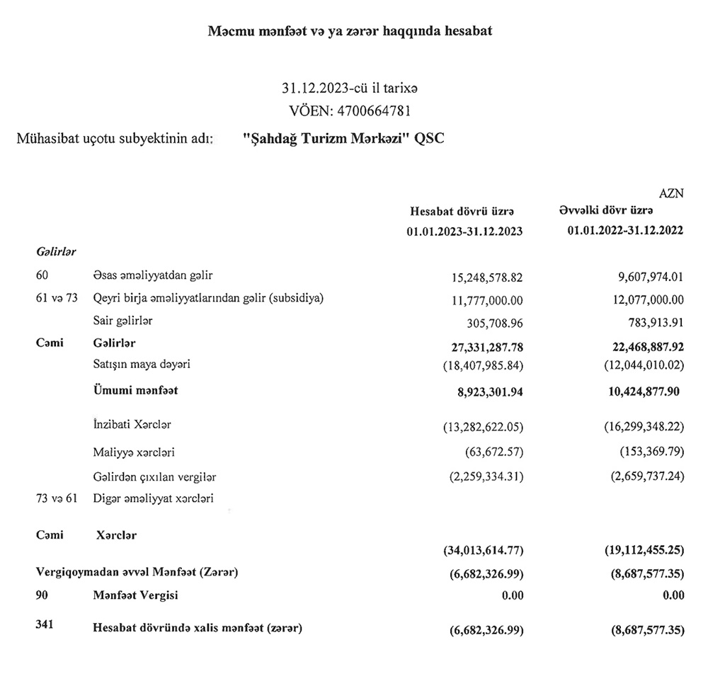 Xatırladaq ki, "Şahdağ Turizm Mərkəzi" 2022-ci ildəki zərərin səbəbləri olaraq inzibati xərclərin (kompleksin köhnəlməsi ilə əlaqədar meydana çıxan təmir və bərpa xərcləri) və satışın maya dəyərinin artmasını göstərmişdi.