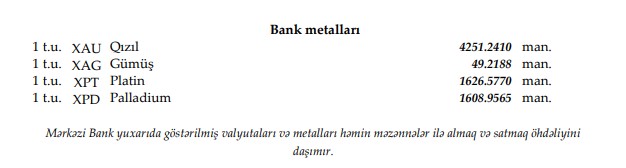 Rəsmi məzənnələr açıqlandı