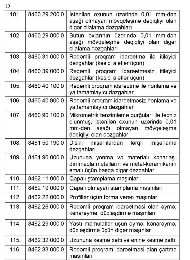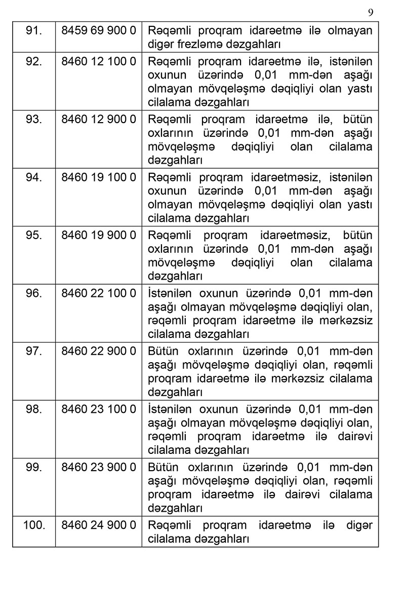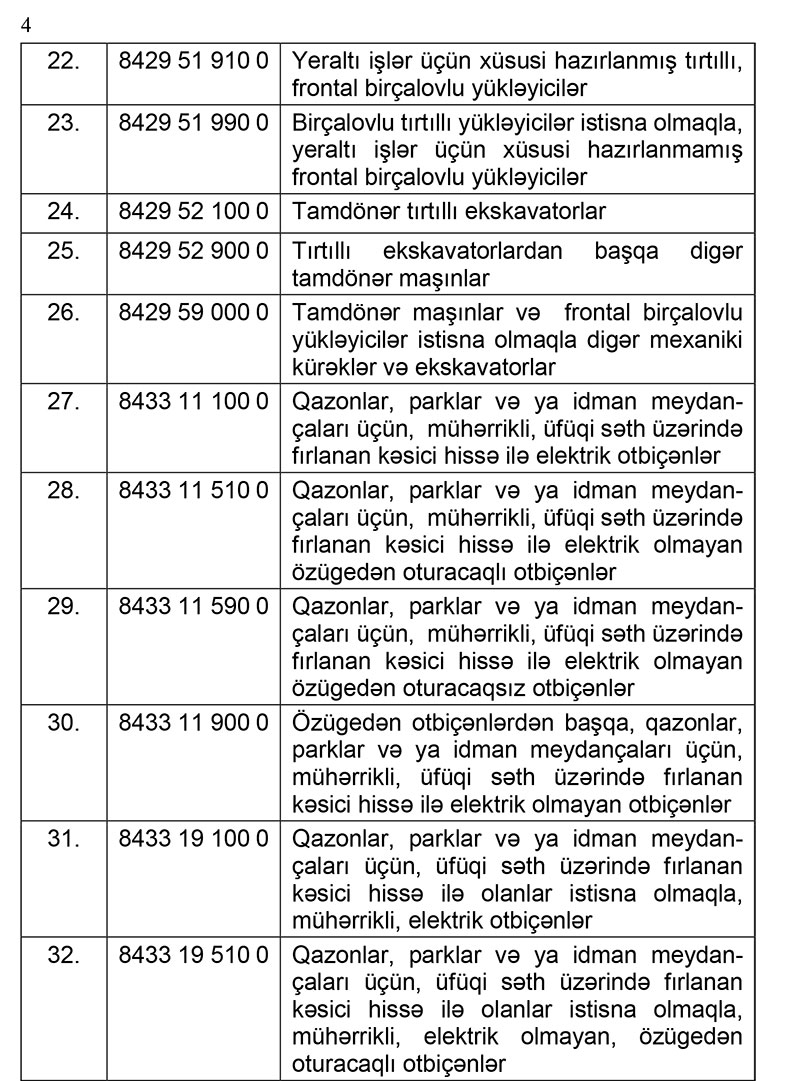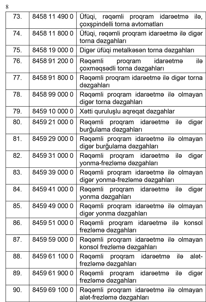 Qərara əsasən, siyahıya 136 lizinq müqaviləsinin obyekti olan əsas vəsaitin idxalı əlavə dəyər vergisindən azad edilib.