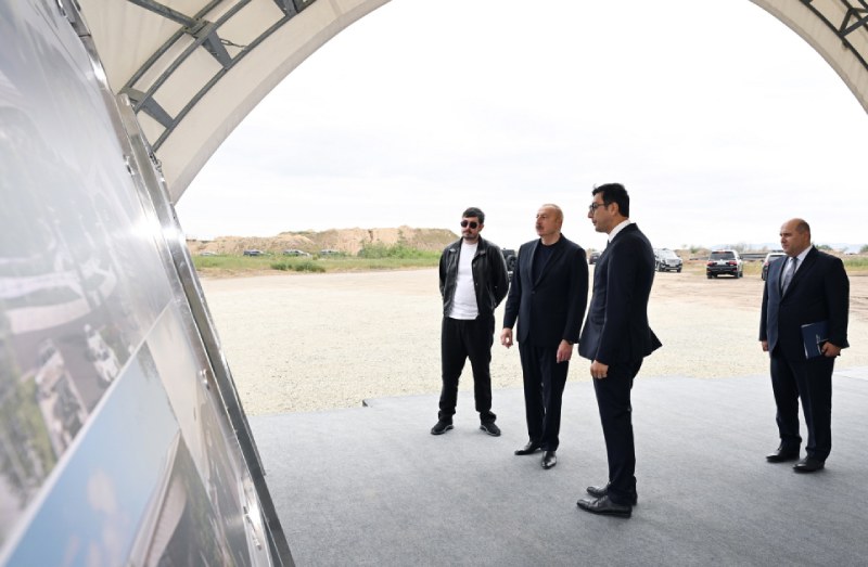 Dövlətimizin başçısı stadionun təməlini qoyub.