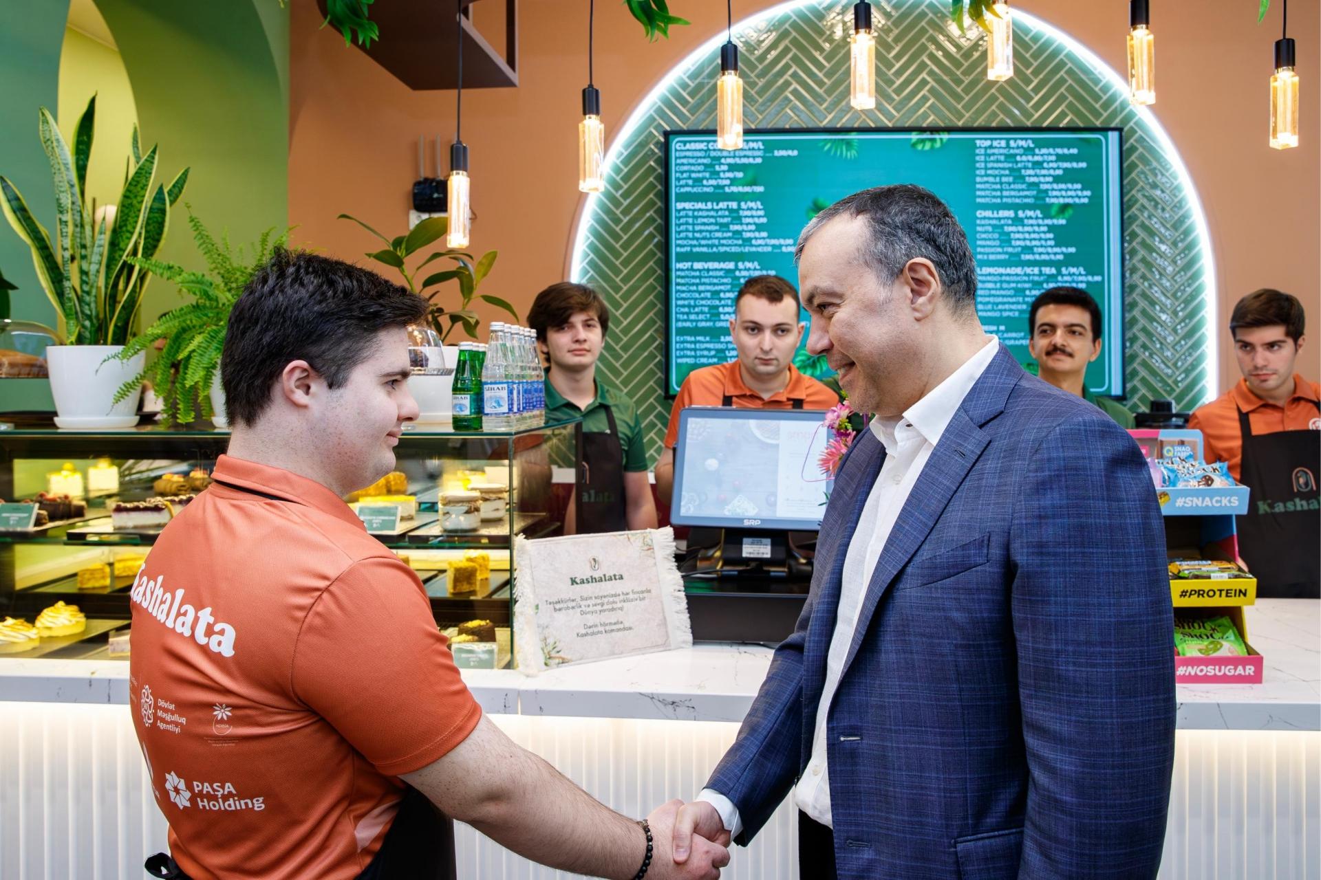 Qonaqlar kafedə yaradılmış şərait və iş mühiti ilə tanış olub, burada məşğulluğu təmin edilmiş əlilliyi olan şəxsləri yeni işləri münasibətilə təbrik ediblər.