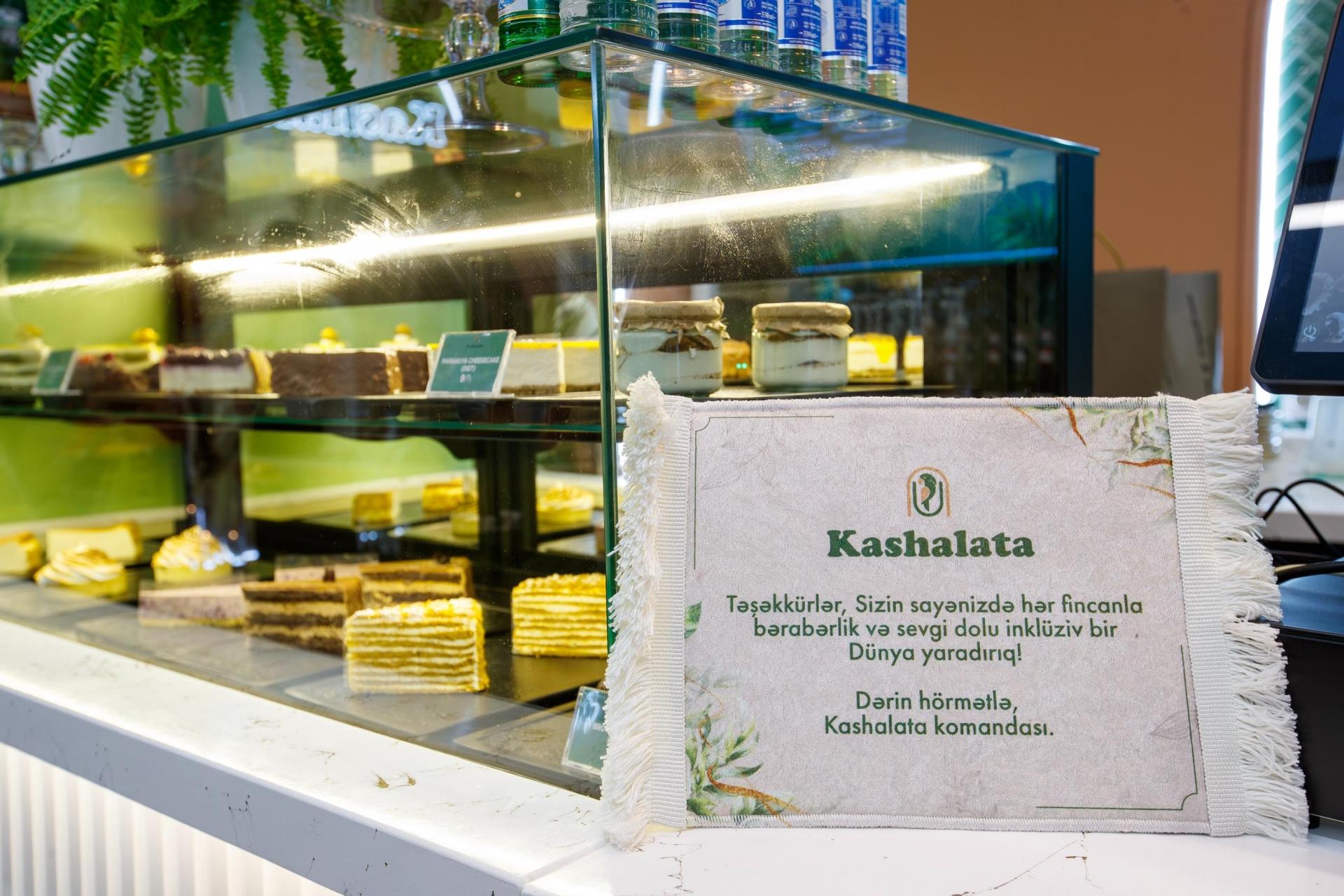 Dövlət və özəl qurumların dəstəyi ilə ərsəyə gəlmiş “Kaşalata” kafesində qayğıya ehtiyacı olan şəxslərin məşğulluğu təmin ediləcək.Bakıda əlilliyi olan şəxslərin də çalışdığı ilk inklüziv kafe – “Kaşalata” kafe fəaliyyətə başlayıb.