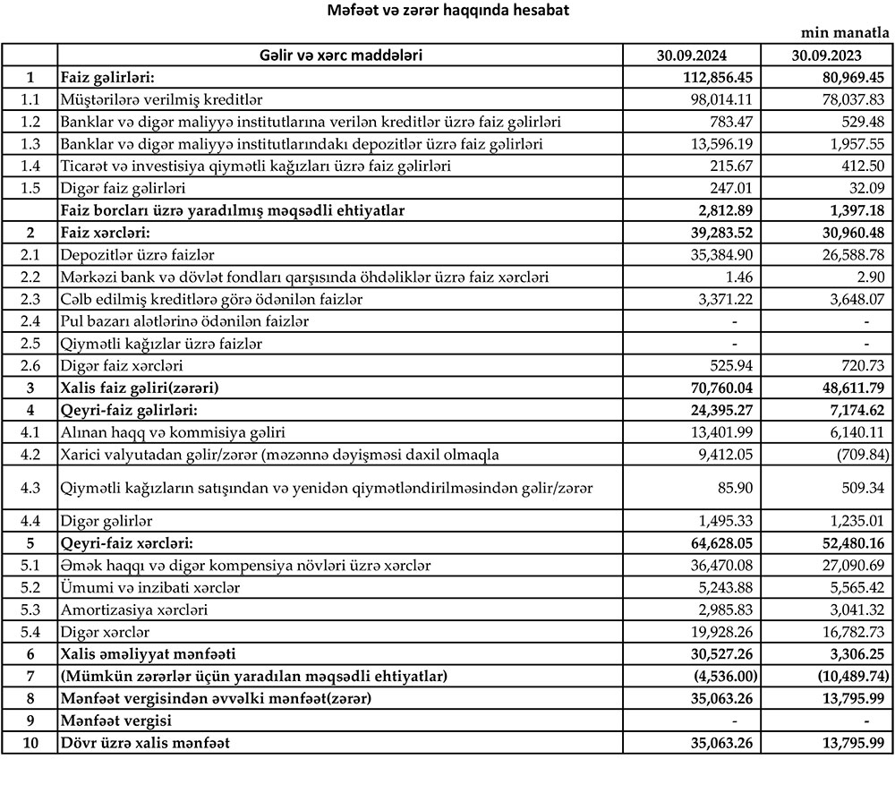 "Yelo Bank" ASC 2024-cü ilin 9 ayını (yanvar-sentyabr) 35 milyon 63 min manat xalis mənfəət ilə başa vurub. Bank 2023-cü ilin eyni dövrünü 13 milyon 796 min manat xalis mənfəət ilə bağlamışdı. Beləliklə, "Yelo Bank"ın xalis mənfəəti 2024-cü ilin 9 ayı ərzində 2023-cü ilin 9 ayı ilə müqayisədə 2,5 dəfə və ya 21 milyon 267 min manat artıb.