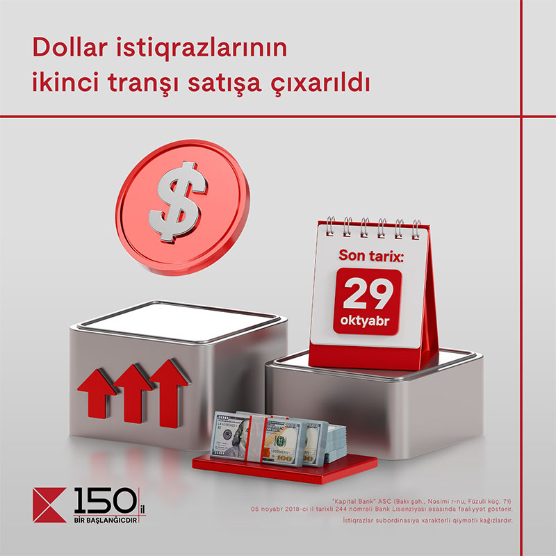 Müştərilər dollar istiqrazlarını 29 okyabr 2024-cü il tarixinədək ən yaxın Kapital Bank filialından əldə edə bilərlər.