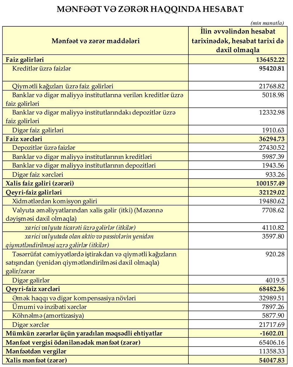 2024-cü ilin III rübünün sonuna Bankın xalis mənfəəti 54 milyon manat, cəmi kapitalı 500.4 milyon manat təşkil etmişdir. Hesabat dövrünün sonuna Bankın faiz gəlirləri ötən ilin analoji dövrünün sonu ilə müqayisədə 17.3%, yəni 20.1 milyon manat daha çox olmaqla 136.5 milyon manat, qeyri-faiz gəlirləri 56.8%, yəni 11.6 milyon manat artaraq 32.1 milyon manat təşkil etmişdir.