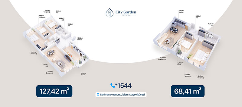 Müxtəlif sahələrdə mənzil seçimləri təklif edən bu layihədə 2, 3, 4 otaqlı və studiya mənzillər mövcuddur. Xüsusilə, sərfəli ilkin ödənişlə geniş mənzil axtaranlar üçün 127,42 kv.m-lik 4 otaqlı mənzil və əlverişli qiymətlə optimal planlanmış ev arzulayanlar üçün isə 68,41 kv.m sahəyə malik 3 otaq studiya mənzil xüsusi maraq doğurur. Hazırda müştərilər bu mənzilləri 20% ilkin ödənişlə əldə edə bilərlər ki, bu da mənzilləri daha əlçatan edir. Həmçinin qeyd olunan mənzilləri 50% ilkin ödəniş və 18 ayadək faizsiz daxili kredit ilə almaq mümkündür.